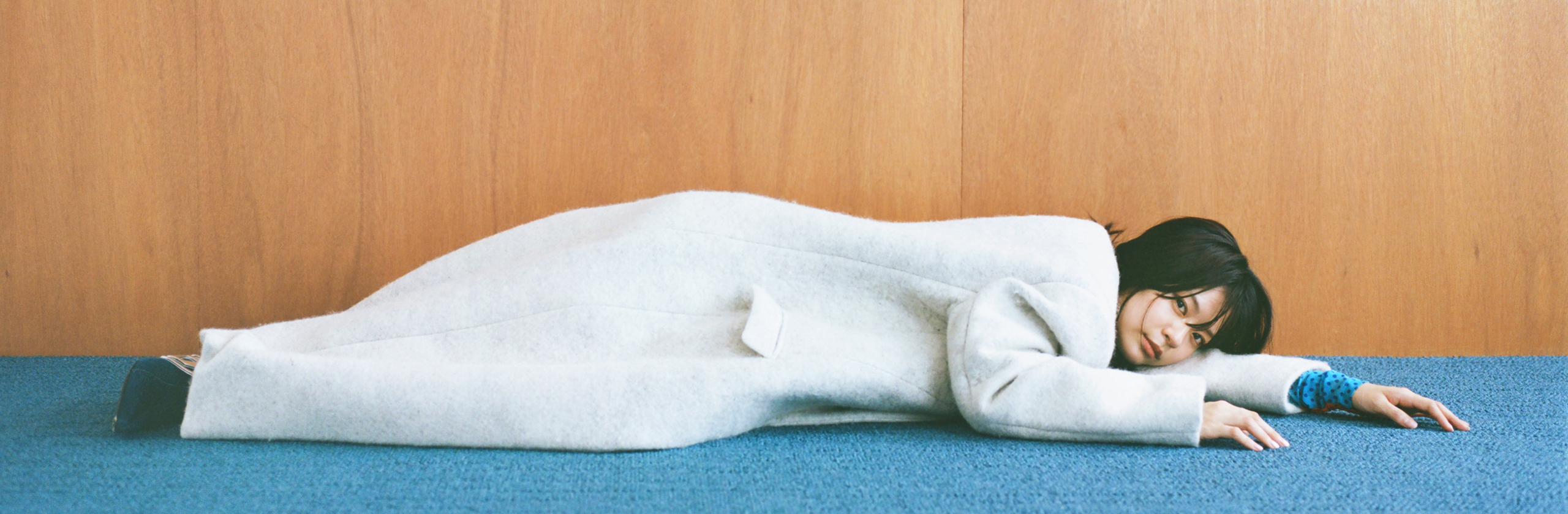 コート¥275,000/サミュエル・グイ・ヤン(サカス ピーアール)、中に着たシアートップス¥29,700/ケーコー(ザシー)、スカート¥17,900/デシグアル(デシグアル 東京 銀座中央通り)、ロングブーツ¥113,300/ディーゼル(ディーゼル ジャパン)、その他スタイリスト私物